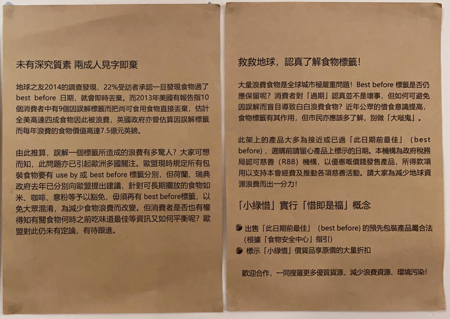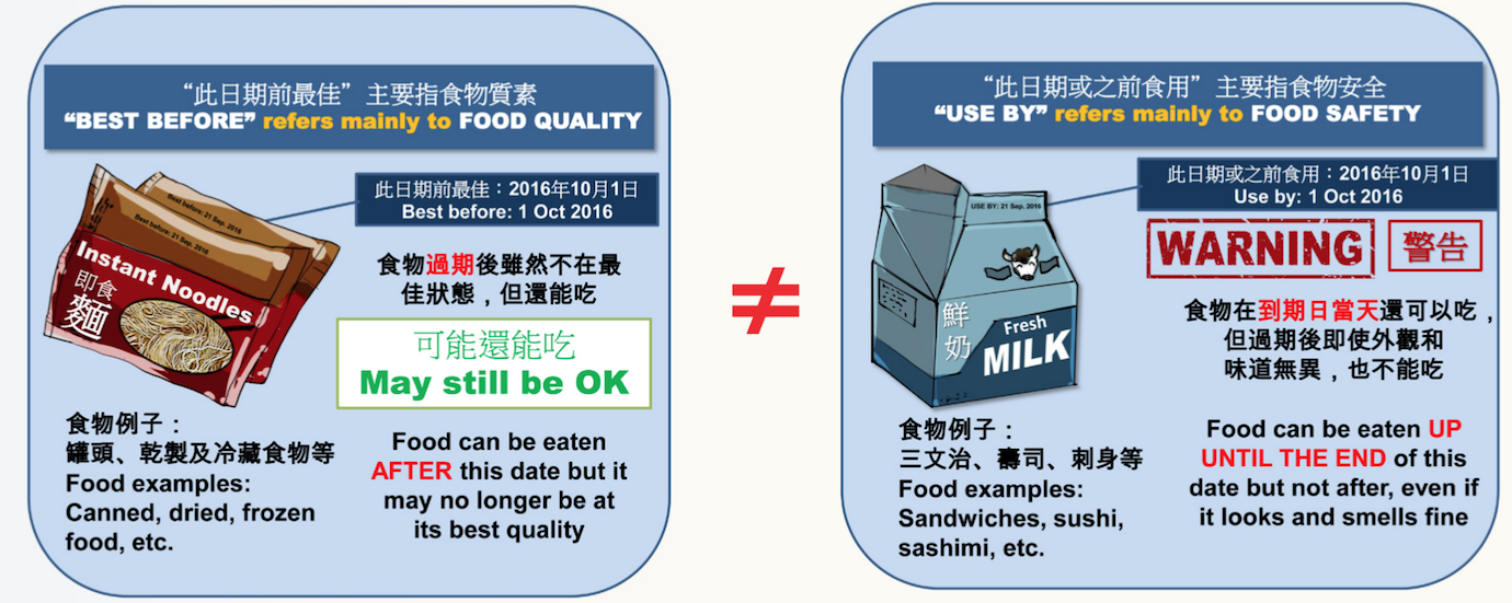 由於港人或許近年受不少困心食物生產旗聞影響,對食物安全愈來愈重視,而商戶又怕出事會壞了聲望,消費者又有多少真弄清楚兩者分別,只看日期就掉。歡迎合作,一同搜准更多的貨源,減少浪費資源,環境污染。