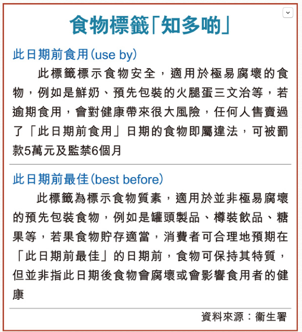 解讀食物標籤–"此日期前最佳"與"此日期或之前食用"的分別