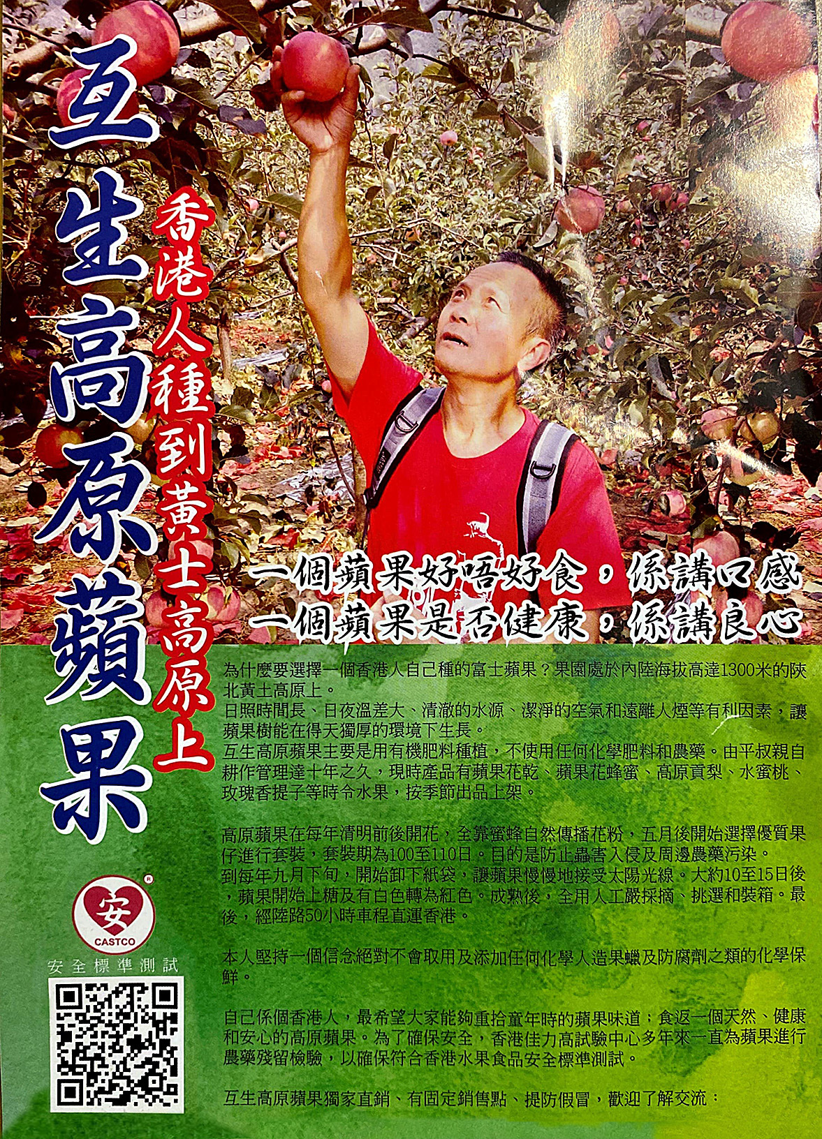 Uncle Ping , a Hong Kong resident, went to Shanxi to develop an orchard in the 1990s. It took nearly a decade to plant 20,000 apple trees on the plateau, the main variety being Fuji Fuji. He described Shanxi as belonging to the Loess Plateau, with long sunshine hours, large temperature difference between day and night, and suitable latitude and longitude. The apples grown with higher sugar content and meat density will have a better flavor. The orchard is located on the Loess Plateau in northern Shaanxi at an altitude of 1,300 meters in inland, far away from urban industrial factories and surrounded by uninhabited people. It allows fruit trees to form a natural organic growth environment. Fruit trees are mainly grown with organic fertilizer (composted with sheep dung) and do not use chemical pesticides. Hong Kong people themselves Full farming management. There are Fuji apples, dried apple blossoms, apple blossom honey, plateau tribute pears, peaches, rose raisins, starfruits, kiwis, cherries and other seasonal fruits, which are released seasonally.