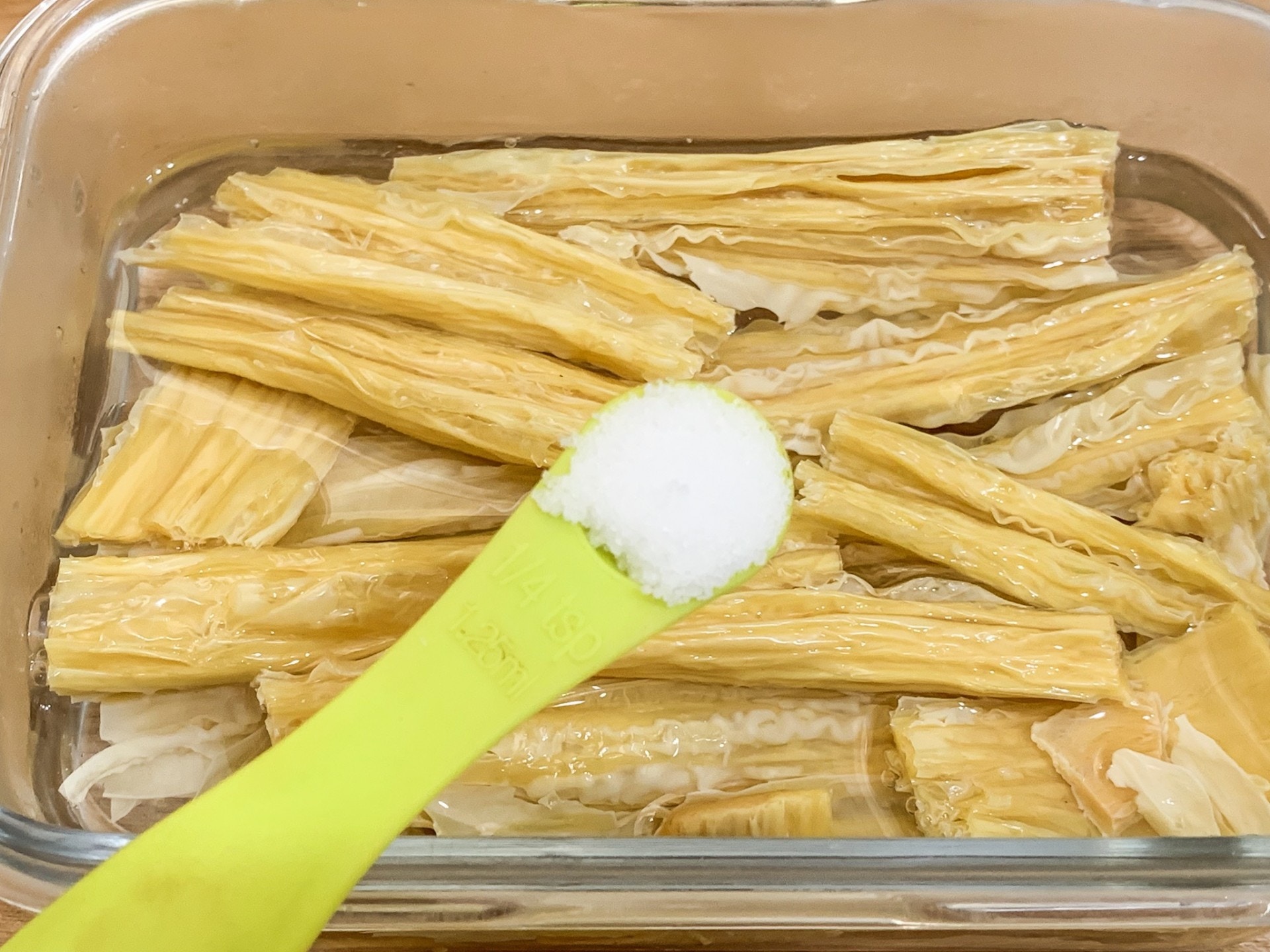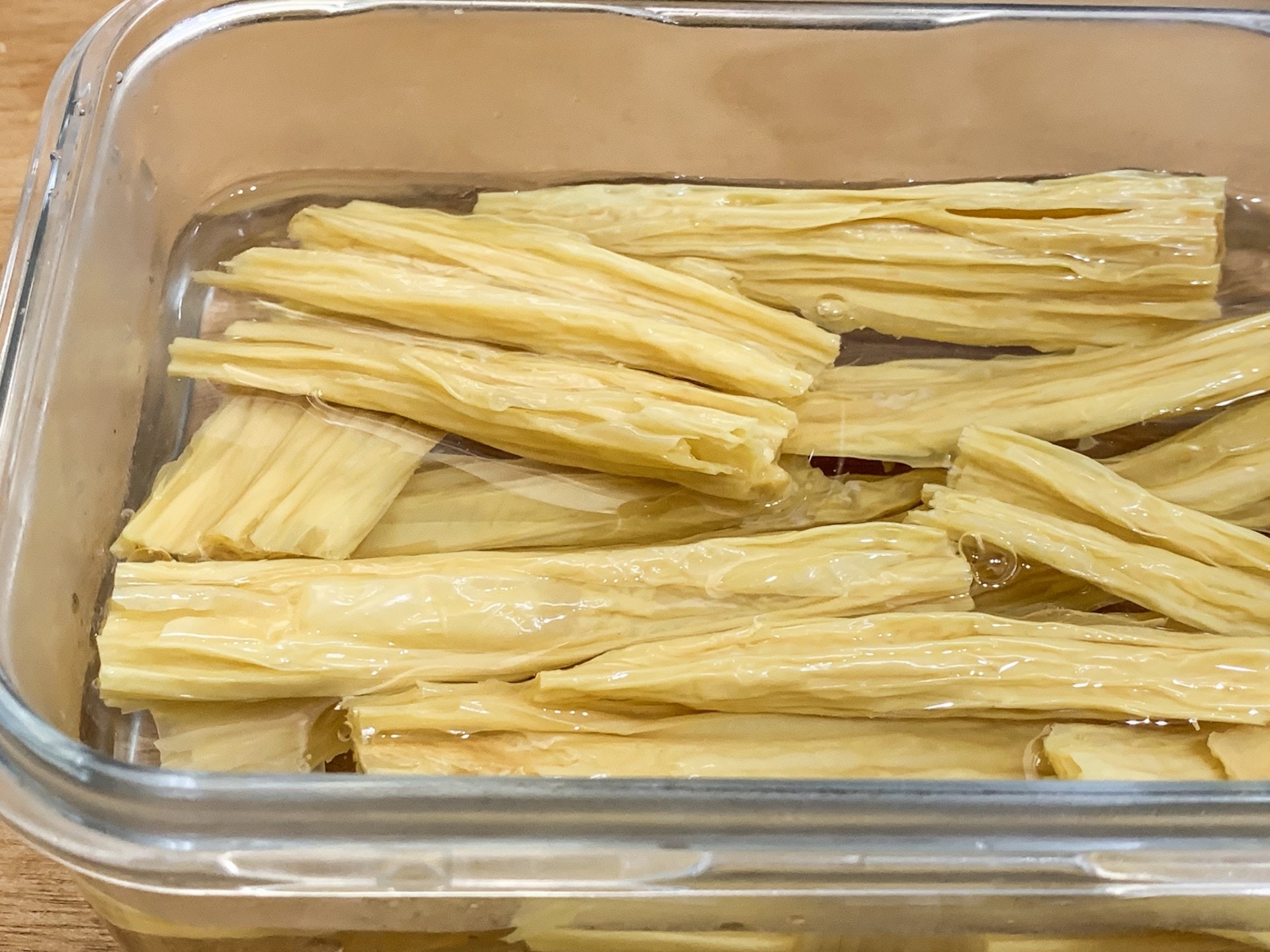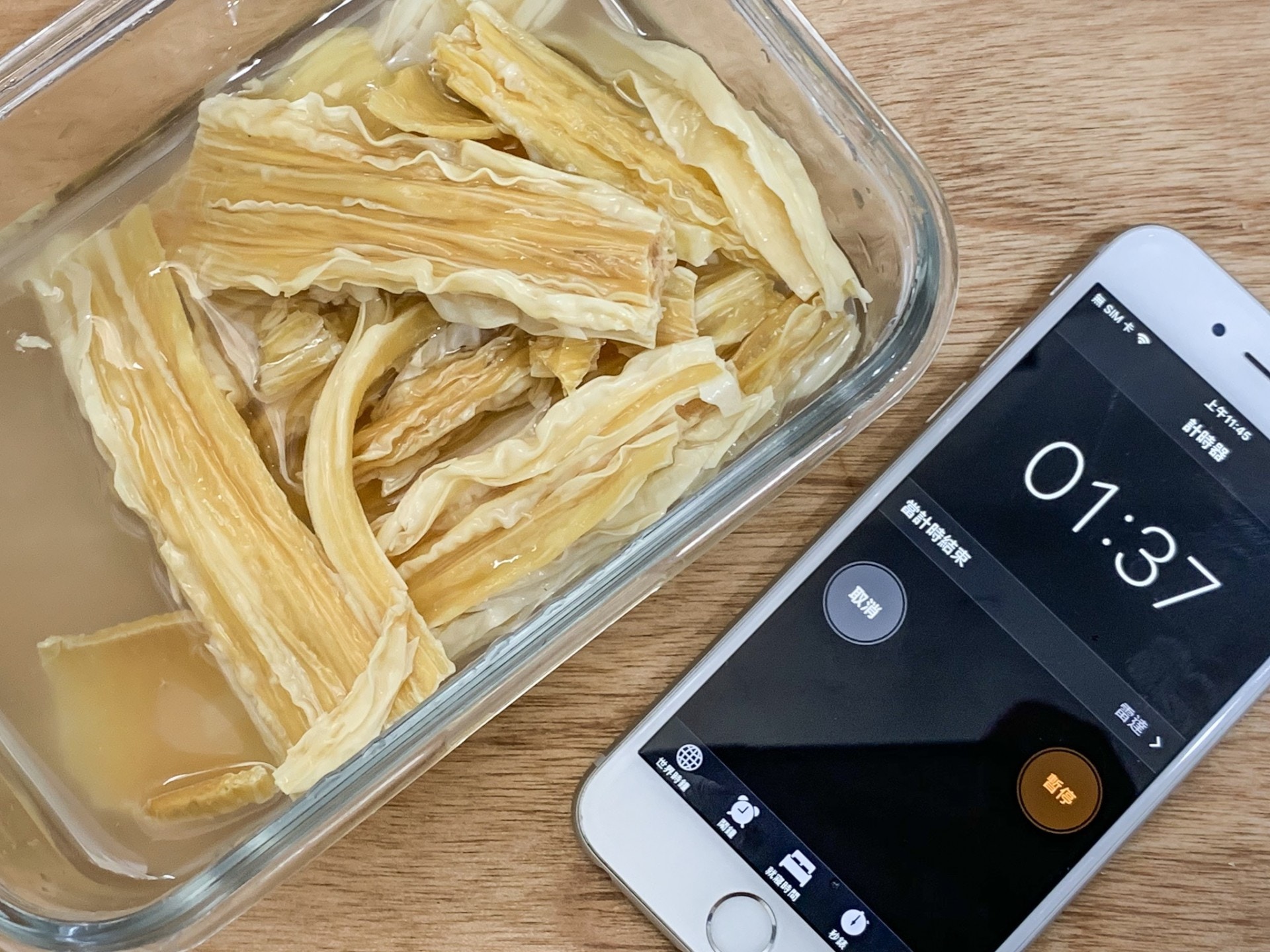 The strips of Dried Beancurd Sticks are folded heavily and take a long time to be soaked. To soak Dried Beancurd Sticks more efficiently, you can refer to the method of soaking dried mushrooms. The two methods are almost the same. It usually takes about two to three hours to soak Dried Beancurd Sticks branches in clean water, but the following method only takes 30 minutes, saving 70 to 80% of the time.