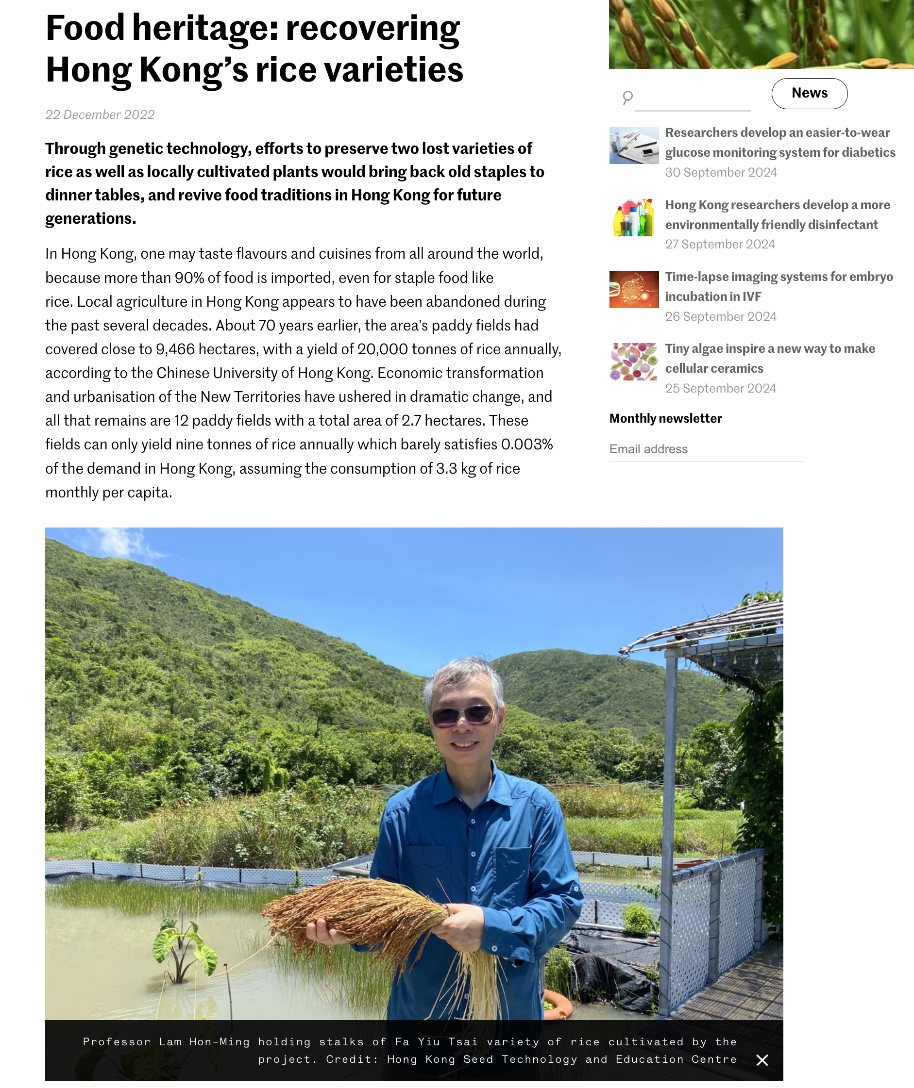 参考:香港中文大学生命科学 - 失われた米の復活 2022年9月14日