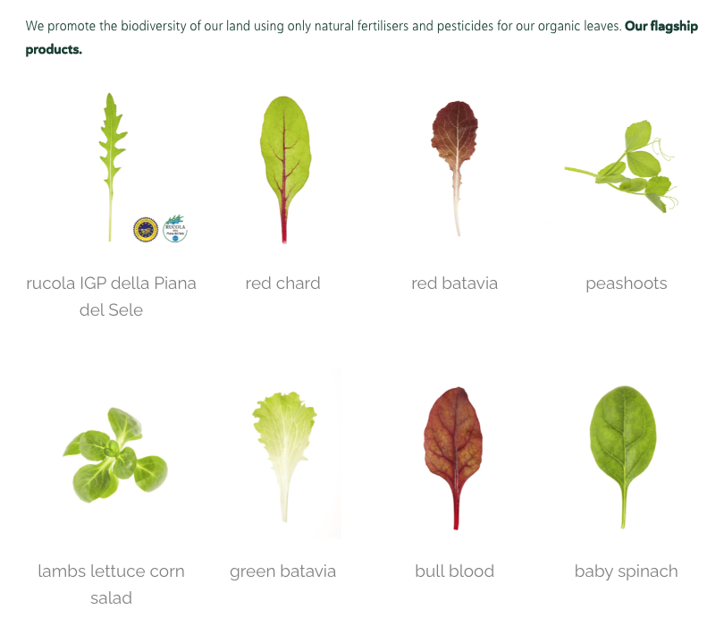 We are a producer organisation and we have put together the best companies in the Piana del Sele. Our crops are immersed in those fertile hills, halfway between the Amalfi and Cilento coasts, on a surface of about 350 hectares. We are specialised in the production of baby leaf.