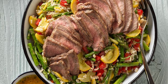答:牛肉是一種很好的蛋白質選擇,也是必需營養素的來源,適合任何一天、任何一餐享用!飲食指南建議成年人每天食用 5.5 盎司蛋白質食物,包括牛肉。牛肉可以在一天中的任何一餐中享用,因此將牛肉加入到各種餐食中將有助於您滿足建議的飲食指南。