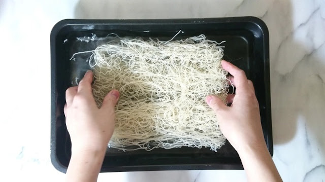 Wash the thick rice noodles for no more than 10 seconds. Then get them out of water.